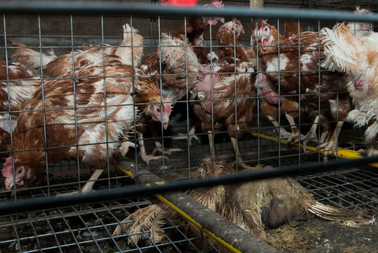 Într-o noapte, o mână o aruncă afară din cușca de pui și o duce la o altă cușcă, unde va trăi pentru tot restul vieții ei scurte. Căci, deși Hena poate trăi până la 10 ani, poate chiar mai mult, în fermele producătoare de ouă, găinile sunt epuizate fizic după 18 luni și considerate „consumate” după aceasta vârstă căci nu mai pot da la fel de multe ouă.