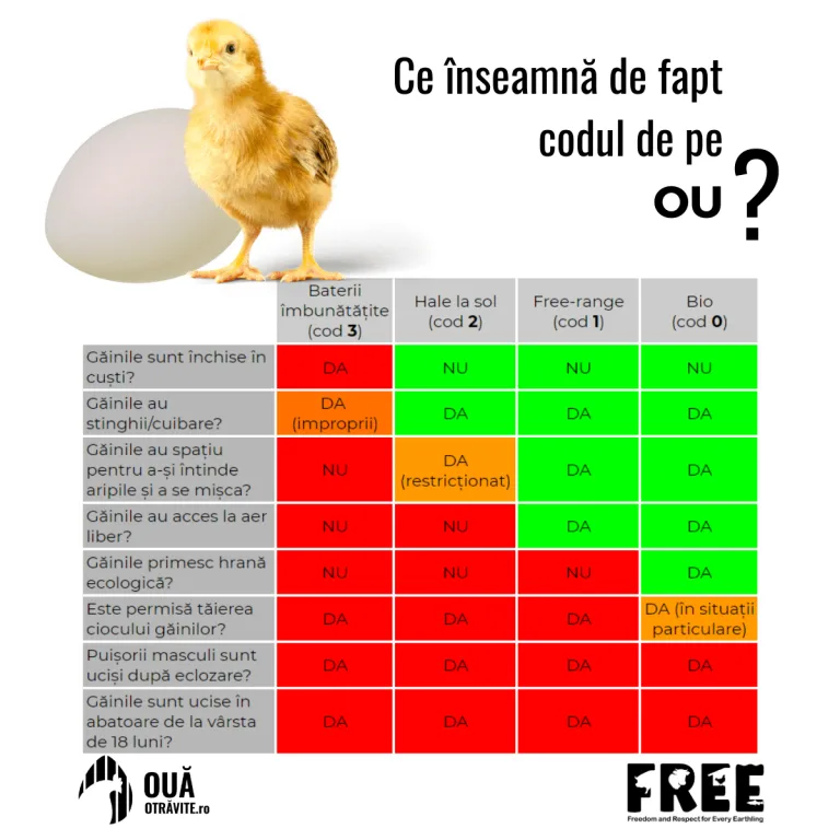 Recomandăm consumatorilor să încerce alternative la consumul de ouă și la alte produse de origine animală. Un mijloc ușor de a face acest lucru e prin proiectul Start 22+, o adaptare a celebrului proiect global Challenge22, ce presupune îndrumarea gratuită, în limba română, spre o alimentație bazată pe plante, de către o echipă de mentori și dieteticieni. Înscrierea se face aici.