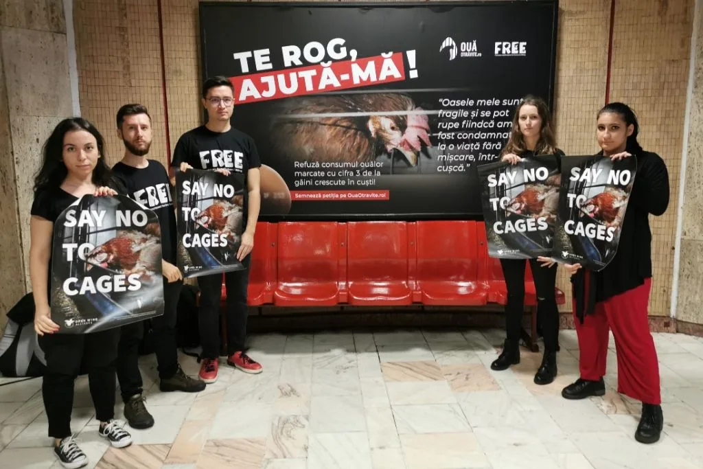 Campania care a demarat cu imagini cu păsări ținute în cuști, în stațiile de metrou din București, continuă să adune semnături, să informeze oamenii atât în mediul online, cât și fizic, în fața magazinelor care nu au publicat niciun angajament cu privire la acest subiect.