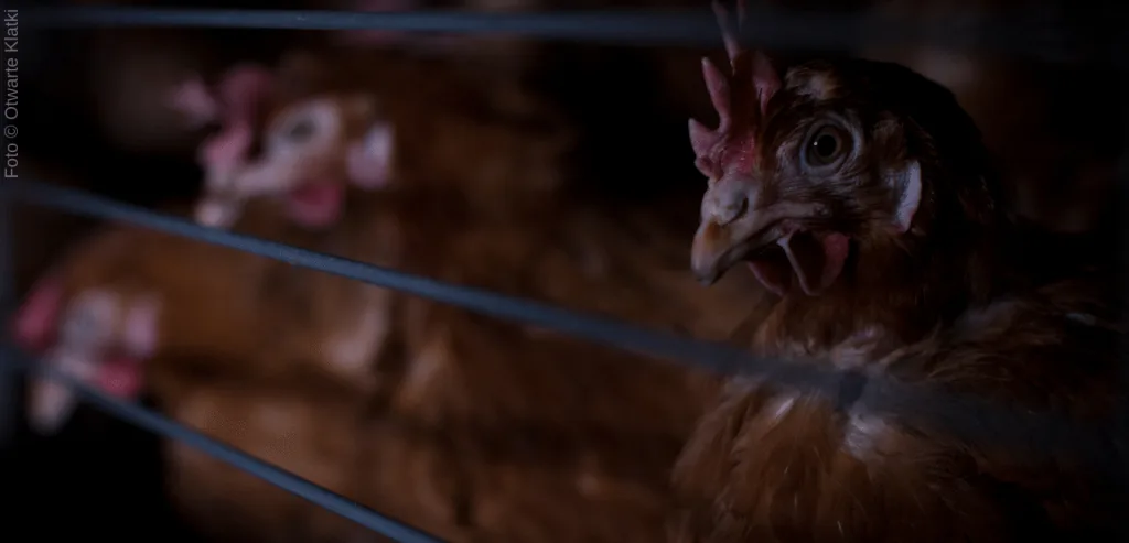 Găini ținute în baterii. Sursa: Otwarte Klatki
